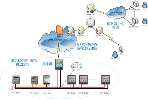 当前国网和南网所使用的用电信息采集系统(即远程抄表系统)包括主站数据服务器平台、集中器、电表终端或数据采集器终端、连接集中器和主站的远程网络(通常采用GPRS/3G/4G网络)、以及连接集中器和电表或采集器的电力线载波(PLC)本地网络,如下图所示。博维亚讯的抄表解决方案,PLC本地网络利用电网配电线与电表通信,无需专门布线,实施和维护方便。同时可配置公司最新研发的4G模块,有效解决主站和集中器之间的通信问题。